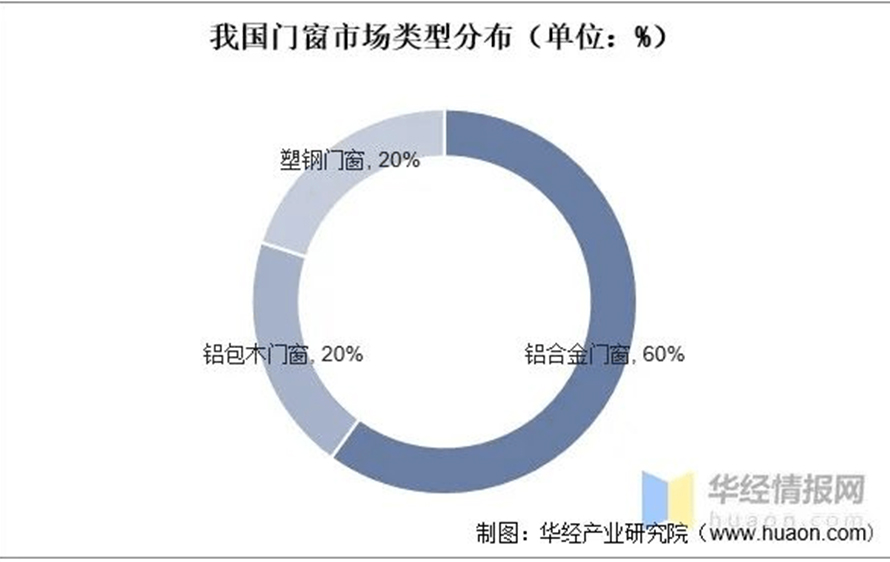 我國各類門窗中以鋁合金門窗為主,占比約六成,價格較高的鋁包木門窗約占兩成,傳統塑鋼門窗也占有20%的市場份額。其中,斷橋鋁合金門窗占據了我國系統窗行業的主流地位。